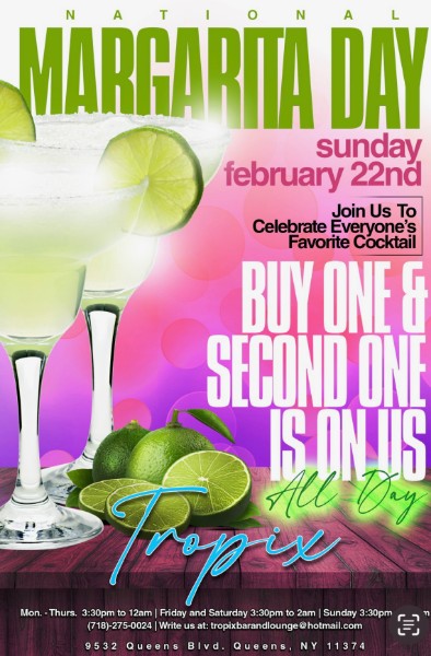 Come celebrate National Margarita day with us on February 22nd.